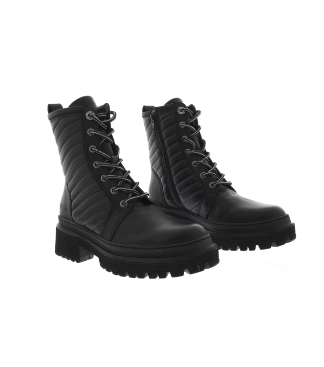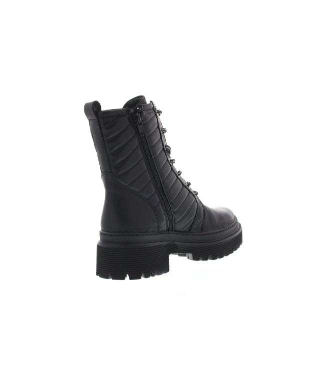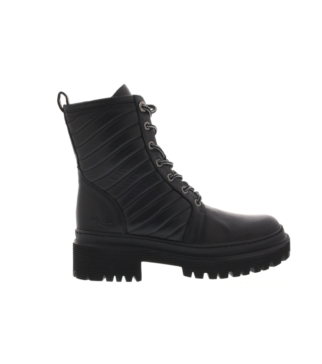 Aqa dames bikerboot artikel A8011 in het zwart leer. De maakwijze is volledig leder en de veterboot beschikt tevens over een uitneembaar voetbed. De pasvorm valt normaal.