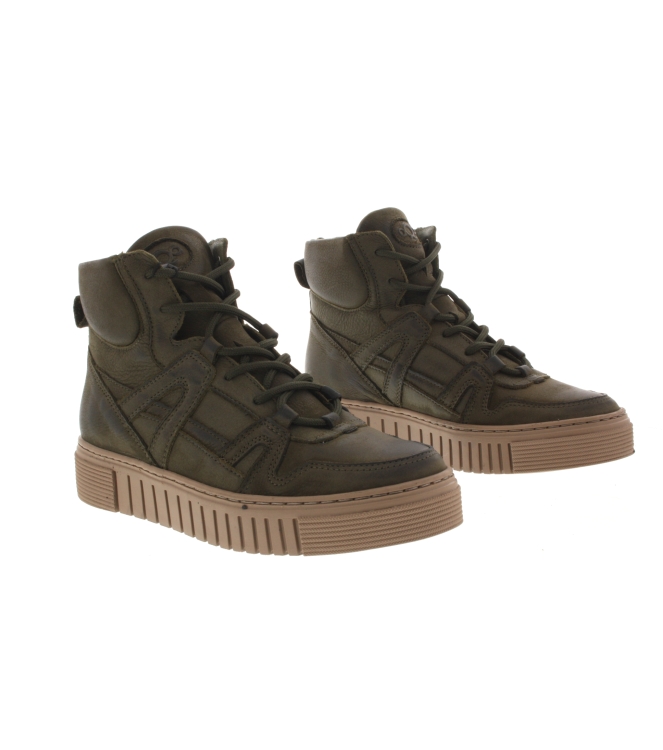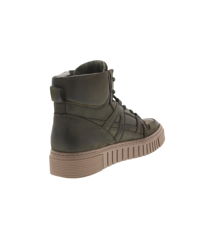 Aqa veterschoenen voor dames, artikel A8168 in het groen leer. De maakwijze is volledig leder binnen- als buitenzijde. De pasvorm valt normaal.