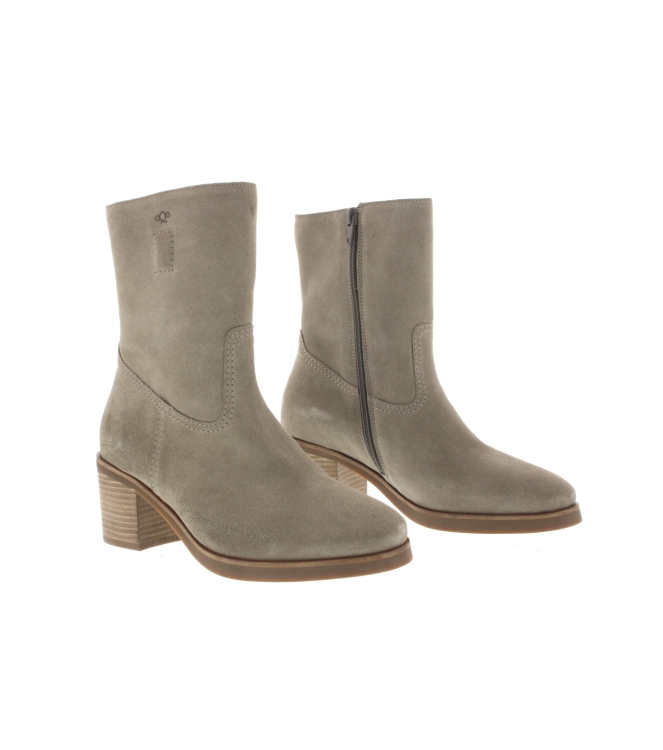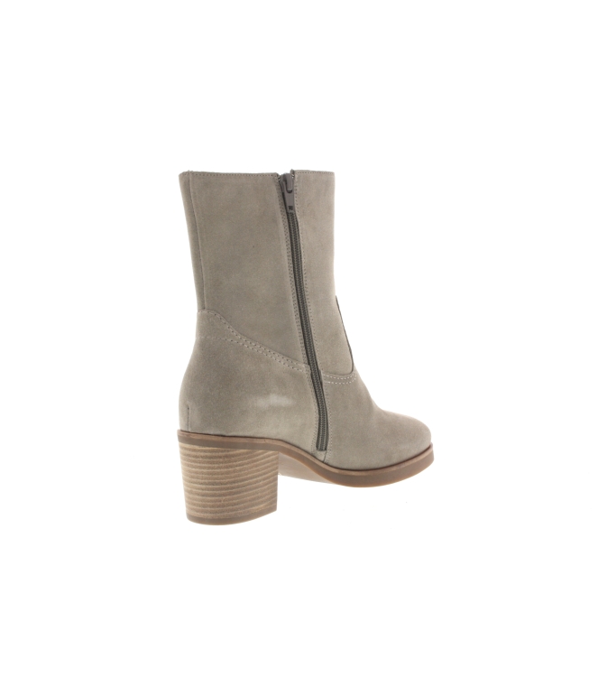 Aqa enkellaars voor dames, artikel A8477 in het grijs nubuck leer. De maakwijze is zowel binnen als buitenzijde volledig leder. De pasvorm valt normaal.