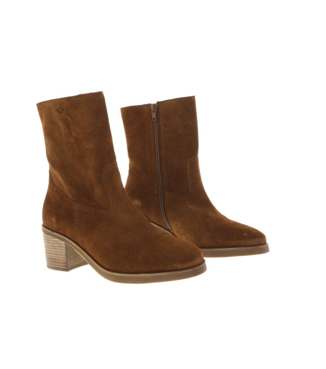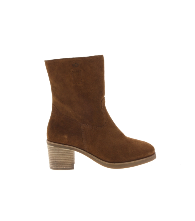 Aqa enkellaars voor dames, artikel A8477 in het cognac nubuck leer. De maakwijze is zowel binnen als buitenzijde volledig leder. De pasvorm valt normaal.