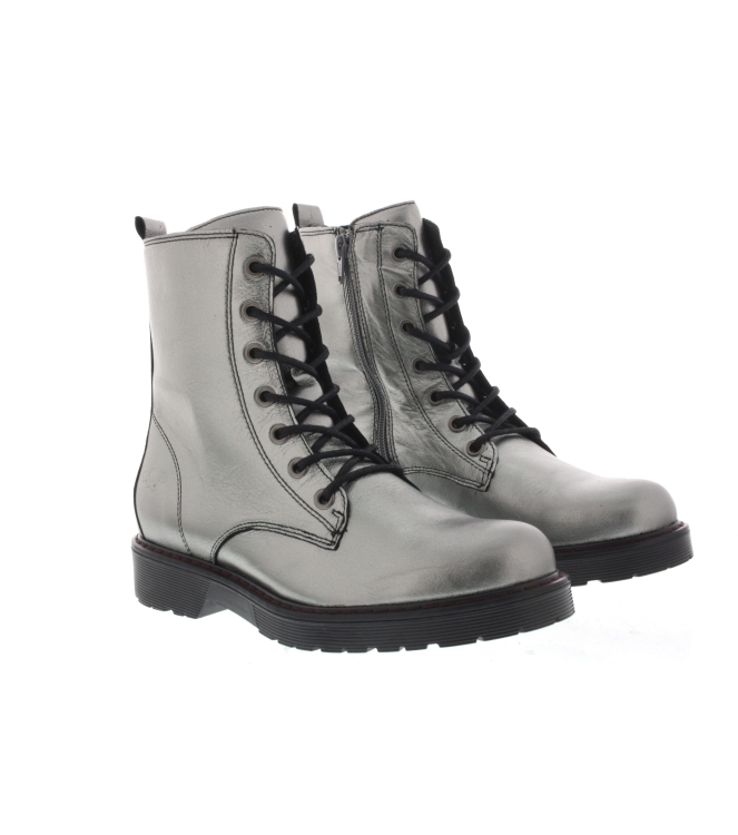 AQA Shoes dames boots, artikel A8630 welke gemaakt is in het oud zilver leer. Fraai detail is het lichtere gweicht van deze schoenen. Beschikbaar met uitneembaar voetbed. De pasvorm valt normaal.