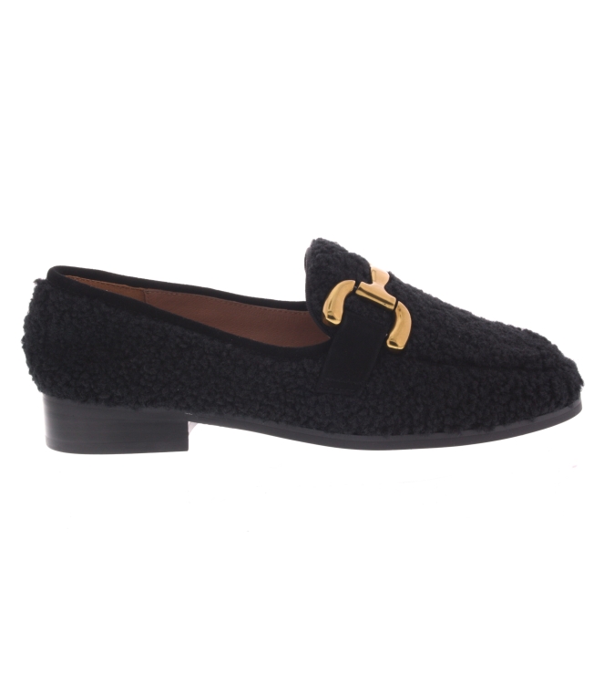 Unieke en aprt dat kun je toch wel stellen bij deze Teddy loafer van Bibi Lou. Artikel Zagreb is dan ook het zwart teddy gemaakt met een prachtige goudkleurige buckle. De pasvorm valt normaal