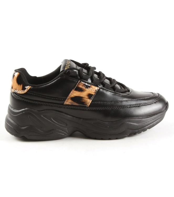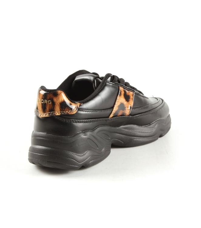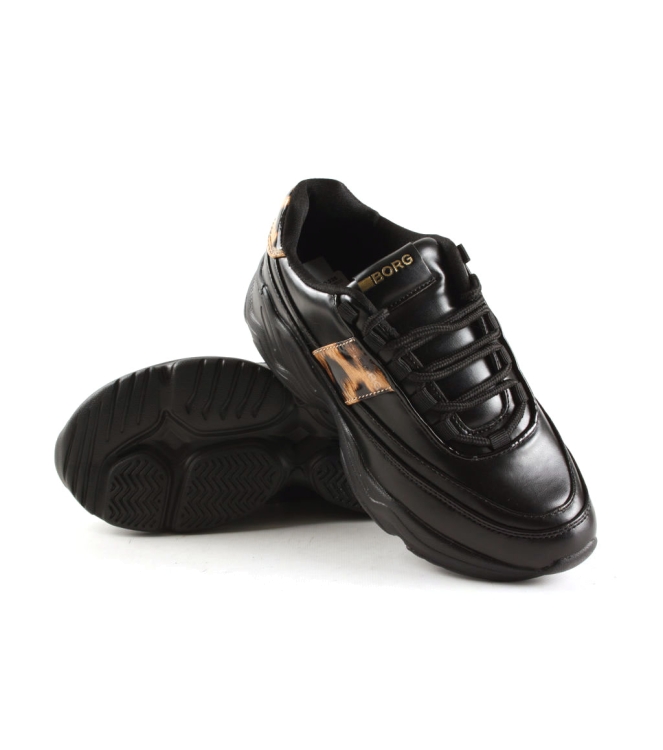 Bjorn Borg dames sneaker artikel X310 Low in het zwart leer. Modisch detail is de groffe zool, een thema wat je veel terug ziet in de mode. De sneaker is licht van gewicht. De pasvorm valt normaal