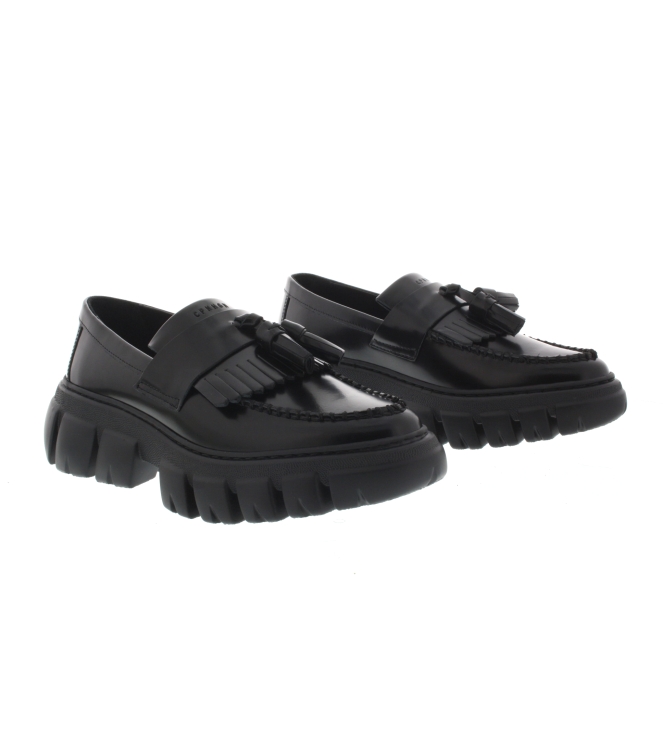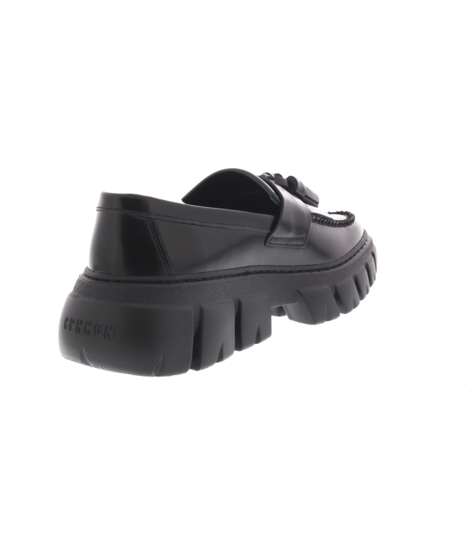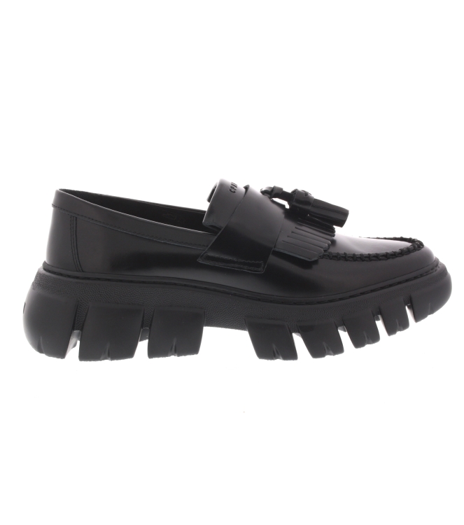 Copenhagen loafer voor dams, artikel CPH315 in het zwart leer. FRaai detail is de chunky zool. Pluspunt verder is het zeer lichte gewicht van de loafer. De pasvorm valt normaal.