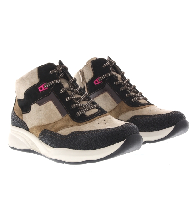 Durea veterschoen voor dames, artikel 9778-608-0746 welke gemaakt is in het zwart multi kleuren leer. Beschikbaar met uitneembaar voetbed. De kleuren laten zich ook makkelijk combineren onder een jeans. De pasvorm valt breed door de K wijdte.