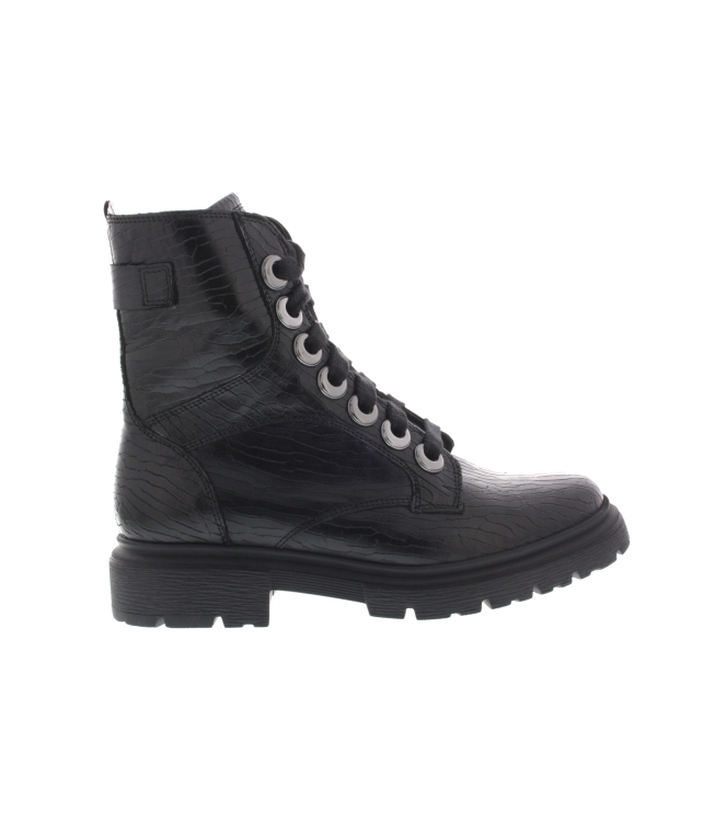 Durea dames boots, artikel 9809-755-1261 welke gemaakt is van zwart leer. Pluspunt is het extreem lichte gewicht van de schoen en prachtige reptielen bewerking in het leer. Beschikbaar met uitneembaar voetbed. De pasvorm valt breed door de K wijdte.