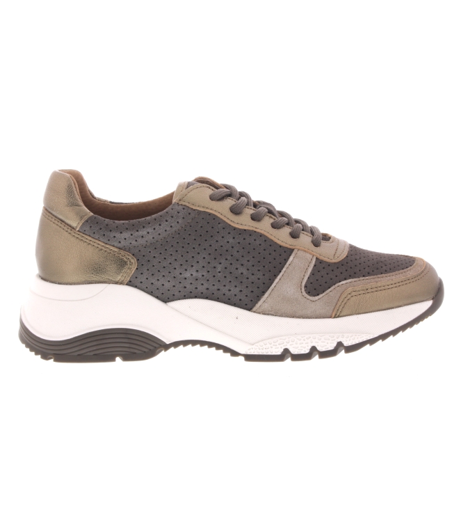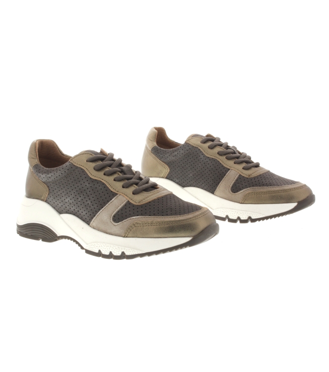 DWRS sneaker, artikel Mackay in het brons combi leer. De maakwijze is zowel binnen als buiten volledig leder. De pasvorm valt normaal.