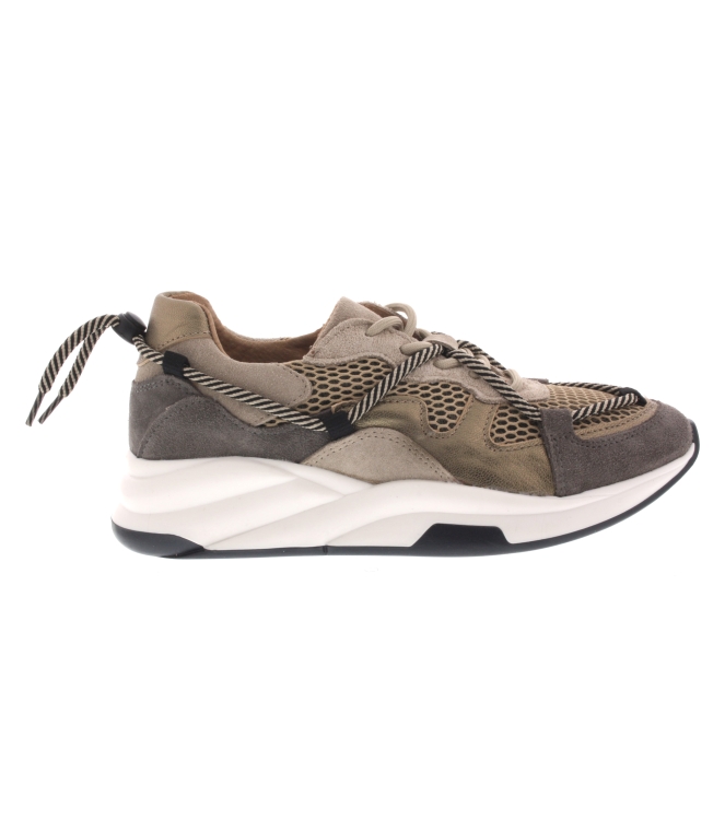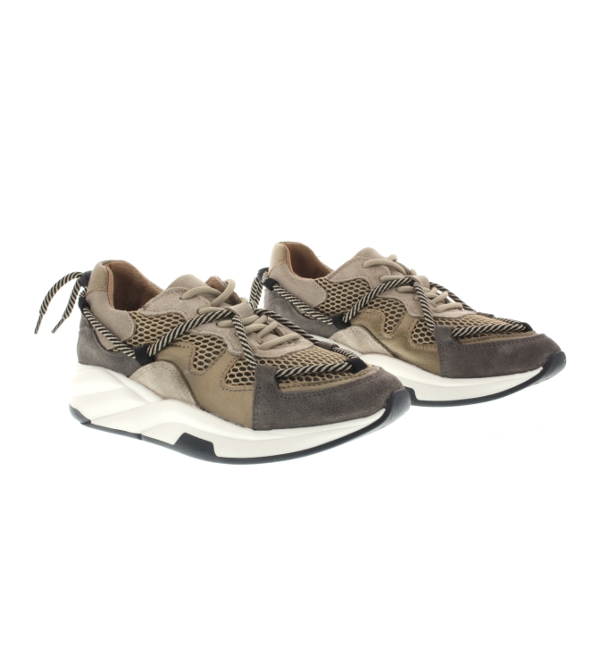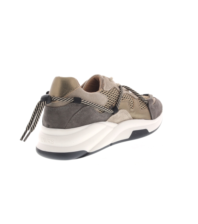 DWRS Label sneaker voor dames, artikel Maryland in het elefante beige leer. De pasvorm valt normaal.