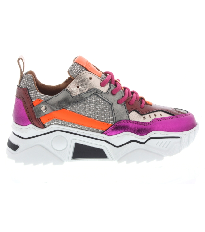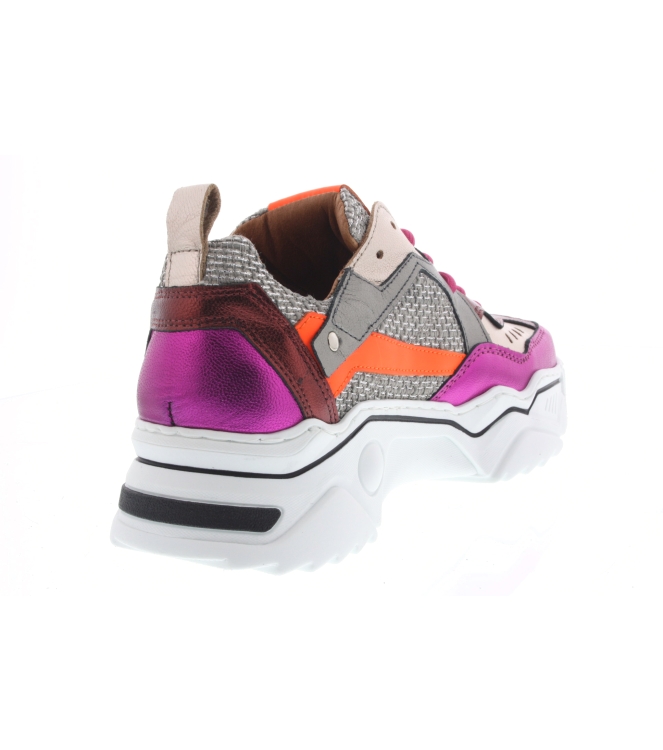 DWRS label sneaker voor dames, artikel Pluto in het zilver en fuchsia leer. De chunky sneakers zijn nog steeds helemaal hot en trendy! Beschikbaar met uitneembaar voetbed. De pasvorm valt normaal.