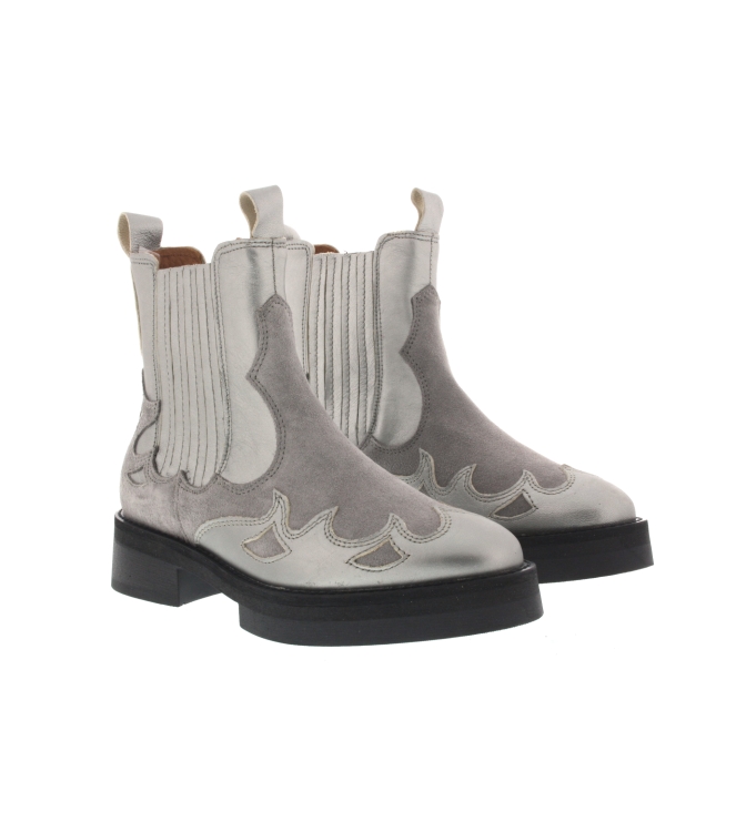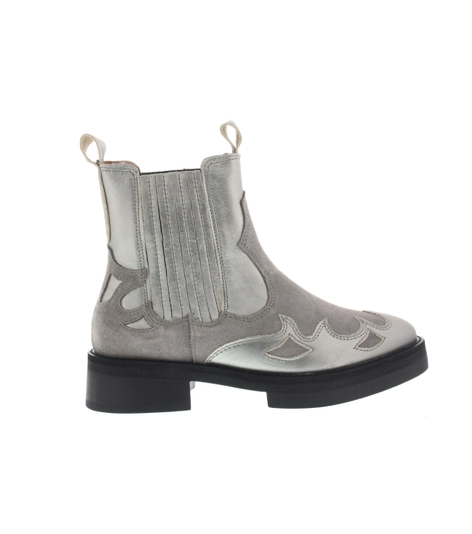 Chelsea Boots Widley suede met metallic details Deze gave bikerboots zijn nieuw bij DWRS! Deze chelsea enkellaarsjes in de kleur steel met zwarte zool, voor dames zijn aan de buitenzijde van suede en metallic en aan de binnenzijde volledig van leer. Helemaal hot met de grove zool! Zou jij de Widley dragen? De pasvorm valt normaal. Deze chelseaboot heeft geen ritssluiting.