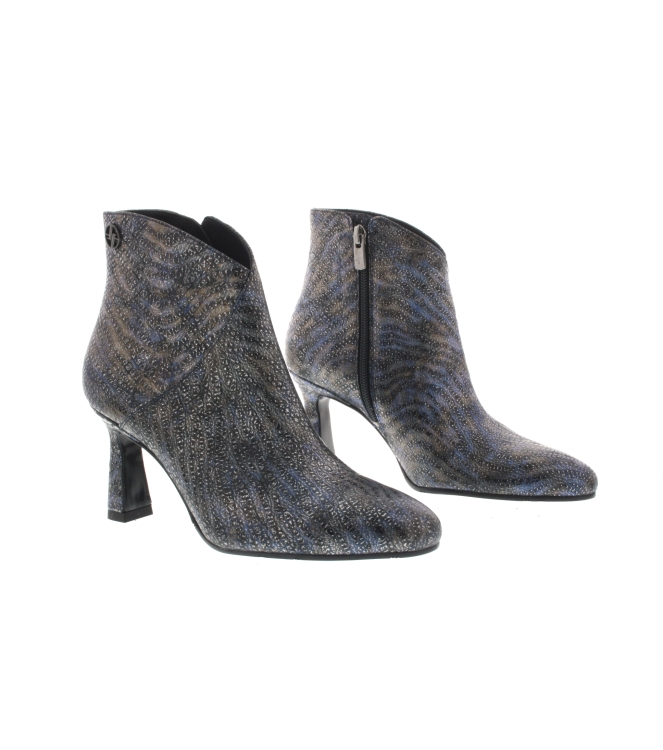 Foris van Bommel enkellaars voor dames, artikel Saxi 02.10 in het multi kleuren leer. Fraai detail is de soort van zebra print door het leer heen. De binennzijde is volledig leder. De Hakhoogte bedraagt 7 cm. De pasvorm valt normaal