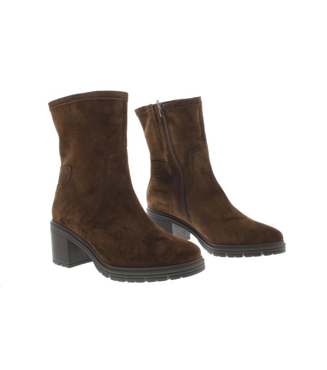 Gabor enkellaars voor dames, artikel 32.840.41 in het bruin nubuck leer. De hakhoogte bedraagt 5 cm. Beschikbaar met uitneembaar voetbed. De pasvorm valt iets breder door de G wijdte.