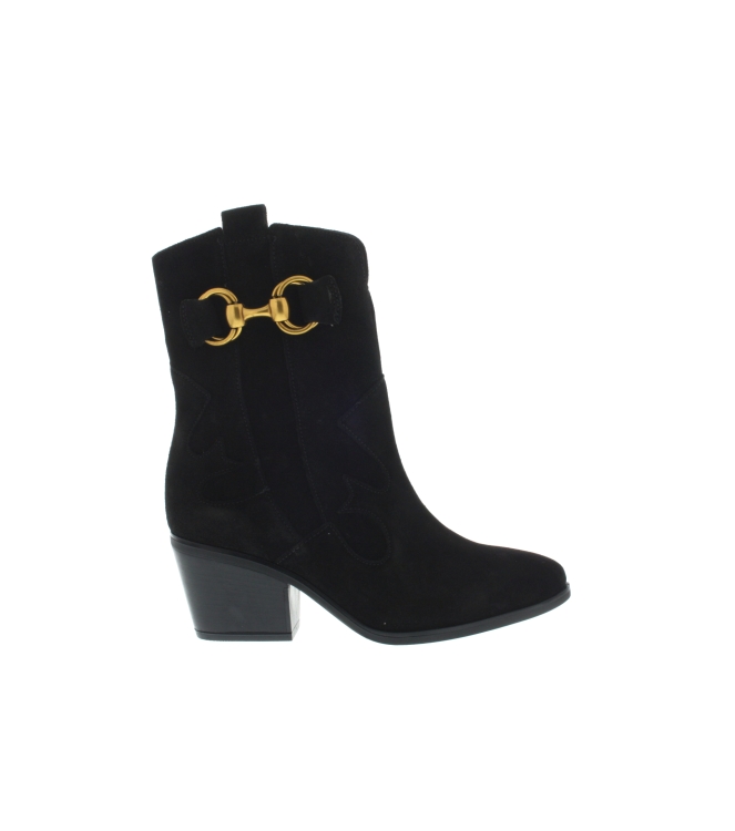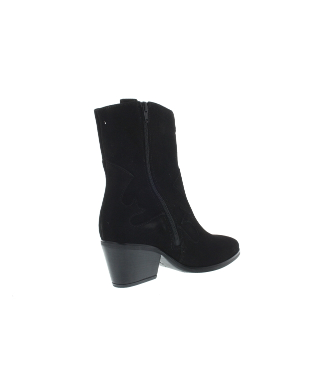 Gabor enkellaars voor dames, artikel 36.694.47 in het zwart nubuck leer. Leuk detail is de subtiele stiksels wat een westernvibe met zich meebrengt. De hakhoogte bedragat 6 cm. De pasvorm valt iets breder door de G wijdte.
