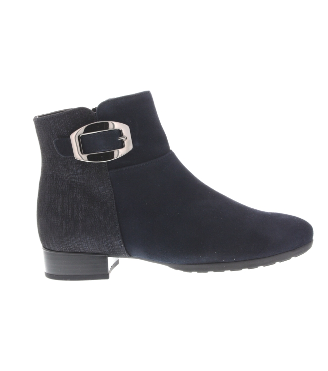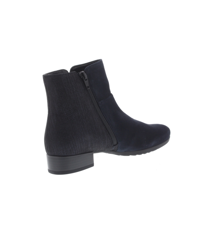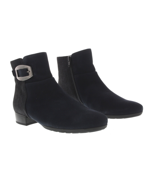 Gabor enkellaars voor dames, artikel 52.714.46 in het donkerblauw nubuck leer. De hakhoogte bedraagt 2,5 cm. De pasvorm valt breed door de H wijdte.