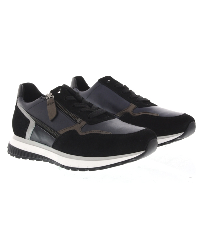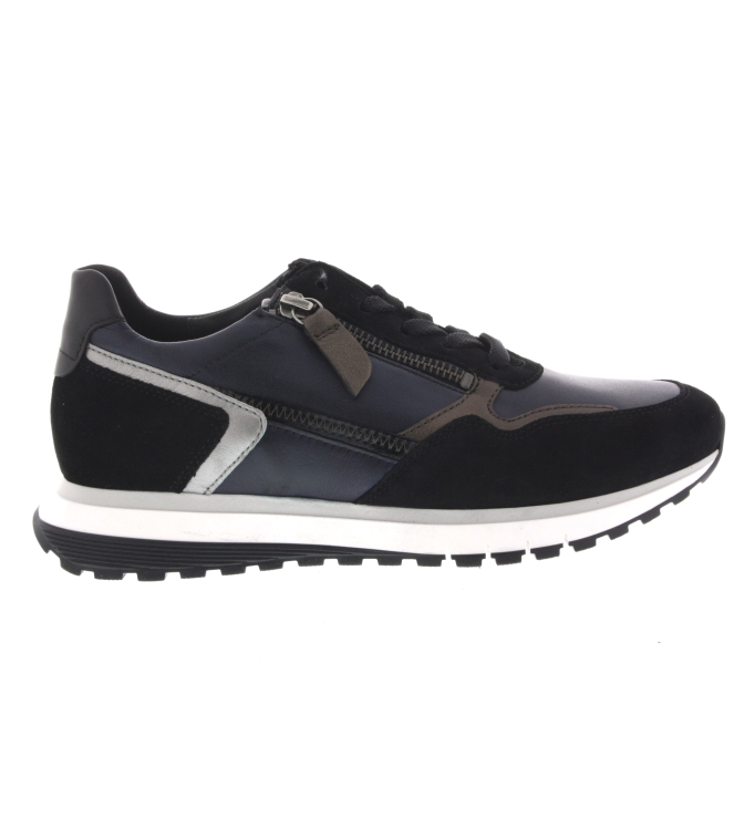 Gabor sneaker voor dames, artikel 56.378.36 welke gemaakt is in het donkerblauw leer. Beschikbaar met uitneembaar voetbed. De pasvorm valt breed door de H wijdte.