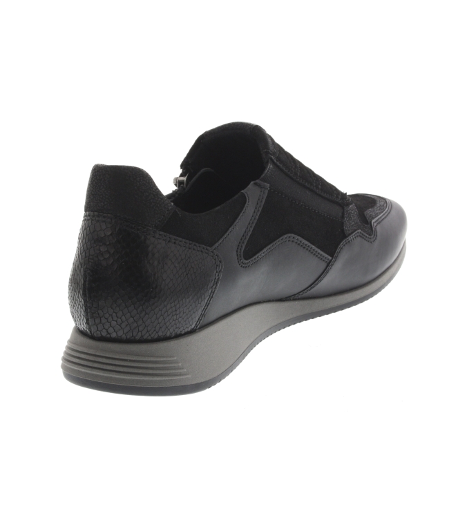 Gabor instapper voor dames, artikel 56.408.47 in het zwart nubuck leer. Beschikbaar met uitneembaar voetbed. De pasvorm valt iets breder door de G wijdte.
