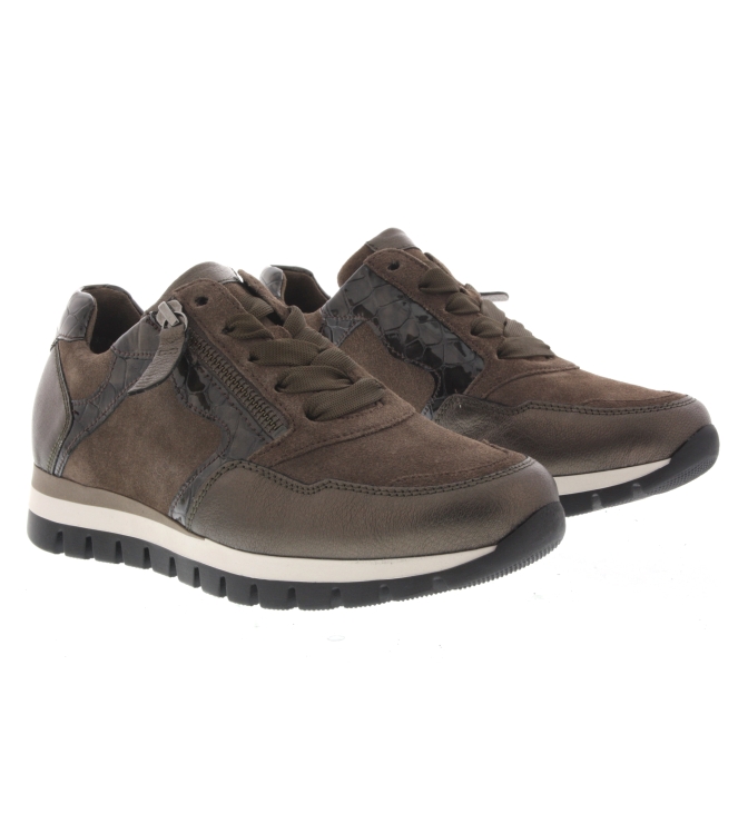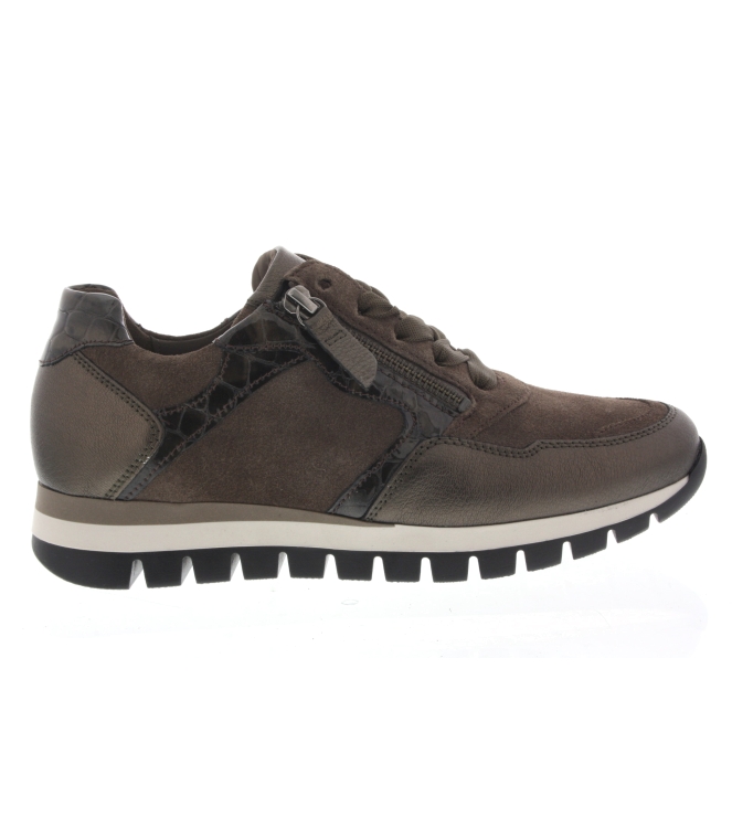 Gabor sneaker voor dames, artikel 56.438.40 welke gemaakt is in het brons leer. Beschikbaar met uitneembaar voetbed. De pasvorm valt breed door de H wijdte.