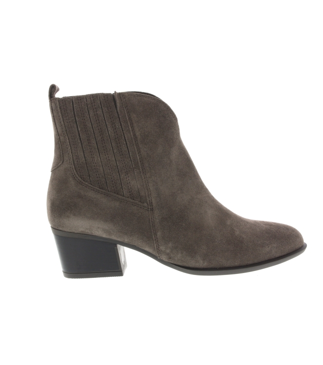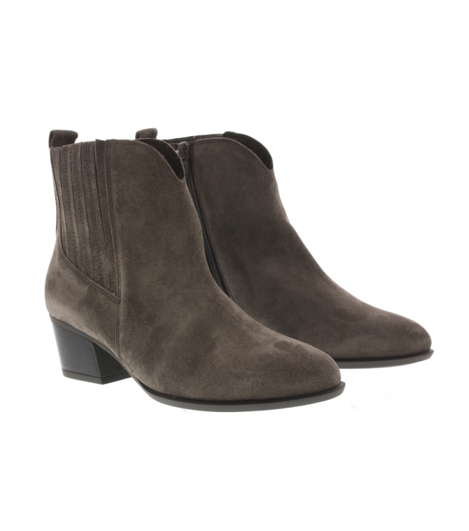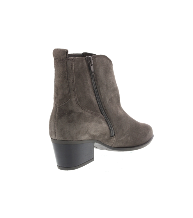 Gabor enkellaars voor dames, artikel 56.682.30 in het taupe suede leer. De hakhoogte bedraagt 4,5 cm. De pasvorm valt iets breder door de G wijdte.