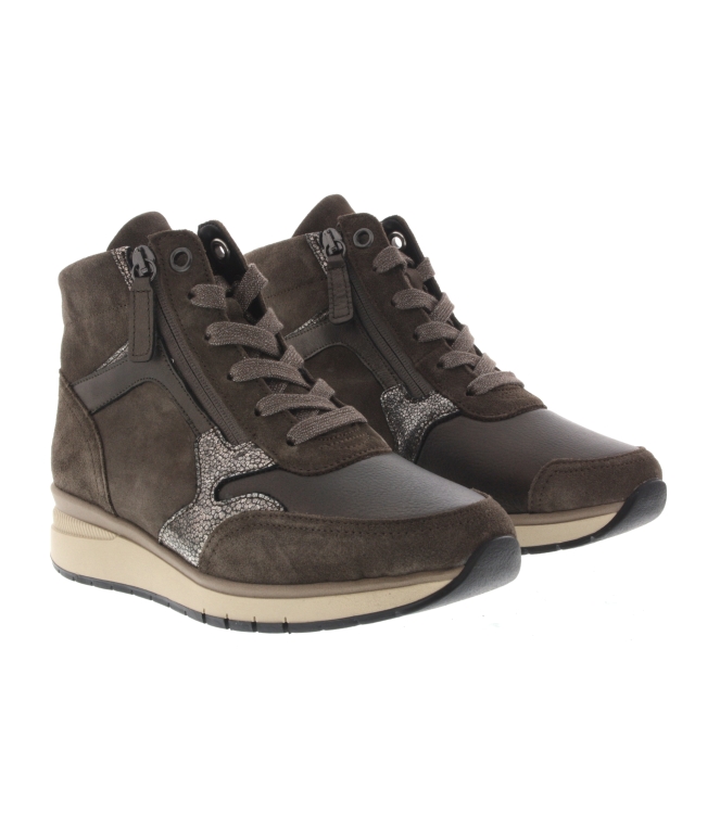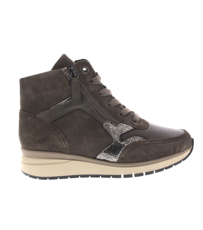 Gabor boots voor dames, artikel 56.708.62 welke gemaakt is in taupe nubuck leer. Beschikbaar met uitneembaar voetbed. Pluspunt is het lichte gewicht van de schoen. De pasvorm valt reed door de K wijdte.