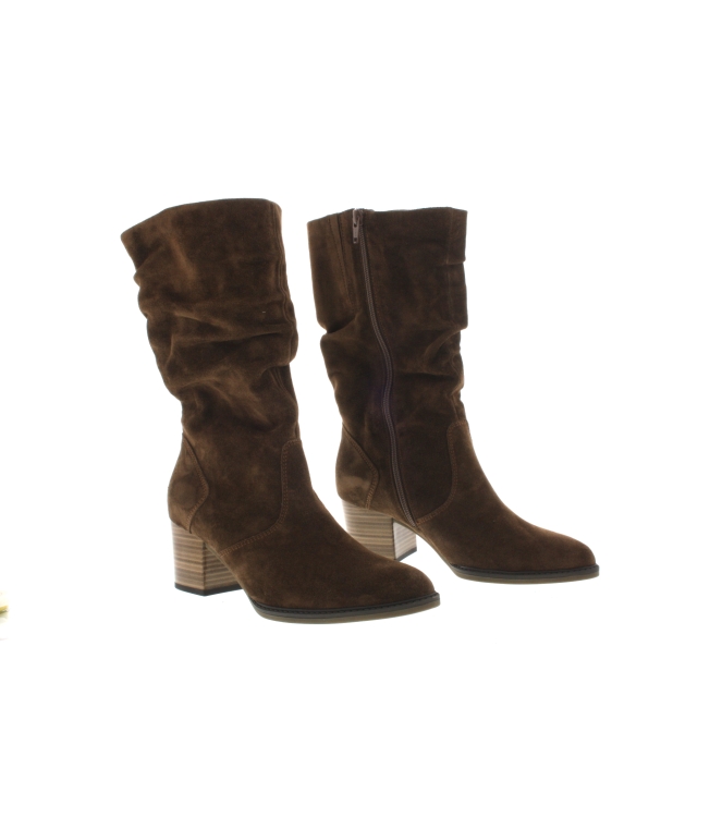 Gabor enkellaars voor dames, artikel 92.894.41 in het bruin suede leer. De hakhoogte bedraagt 5,5 cm. De pasvorm valt iets breder door de G wijdte