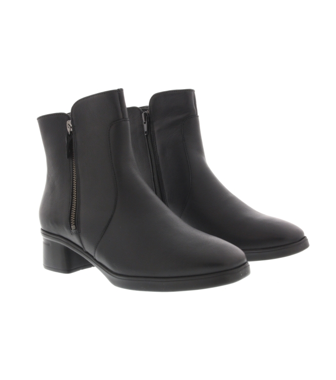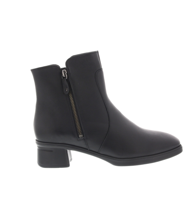 Hartjes enkellaars voor dames, artikel Blues Boot in het zwart leer. De hakhoogte bedraagt 3 cm. Het laarsje is beschikbaar met een uitneembaar voetbed. De pasvorm valt iets breder door de G wijdte.