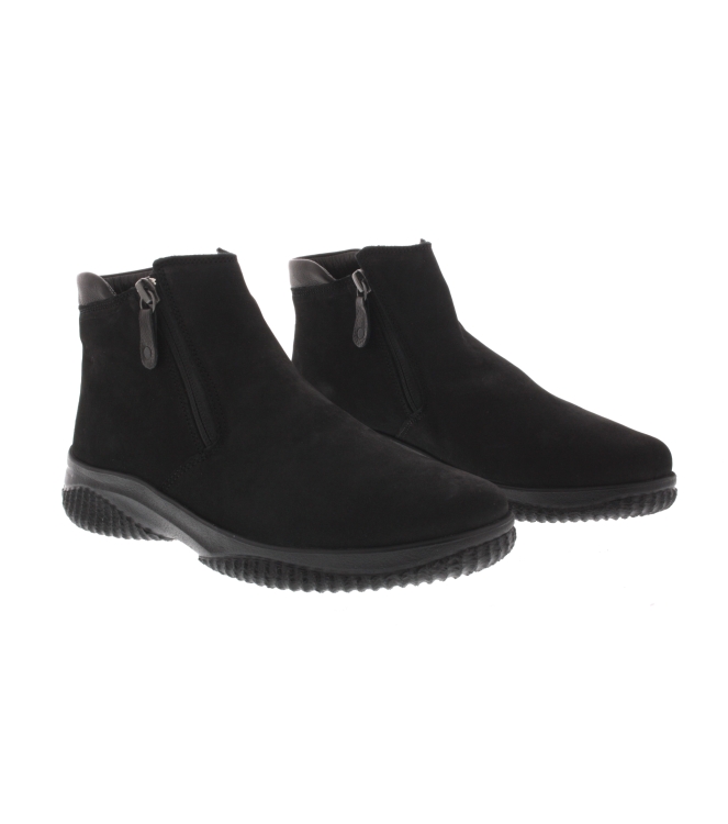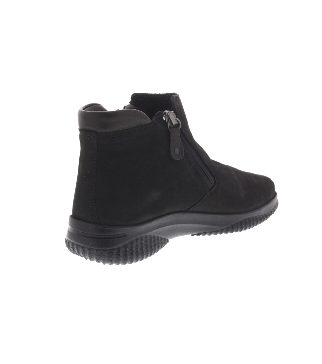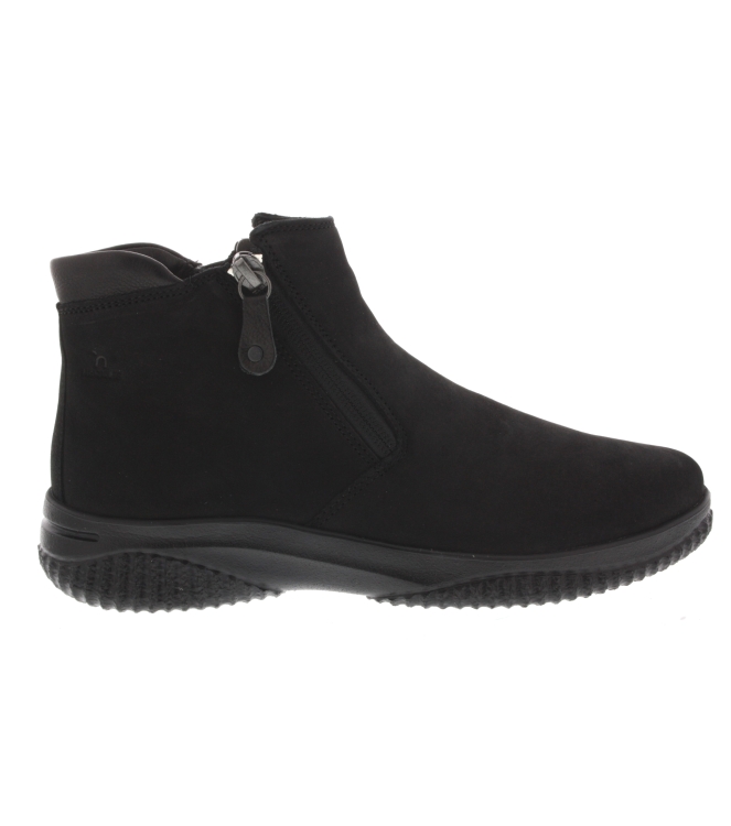Hartjes enkellaars voor dames, artikel Ethno Boot in het zwart nubuck leer. Pluspunt is het zeer lichte gewicht van de schoen en de extreme flexibiliteit van de zool. Beschikbaar met uitneembaar voetbed. De pasvorm valt iets breder door de G wijdte.