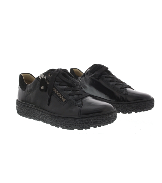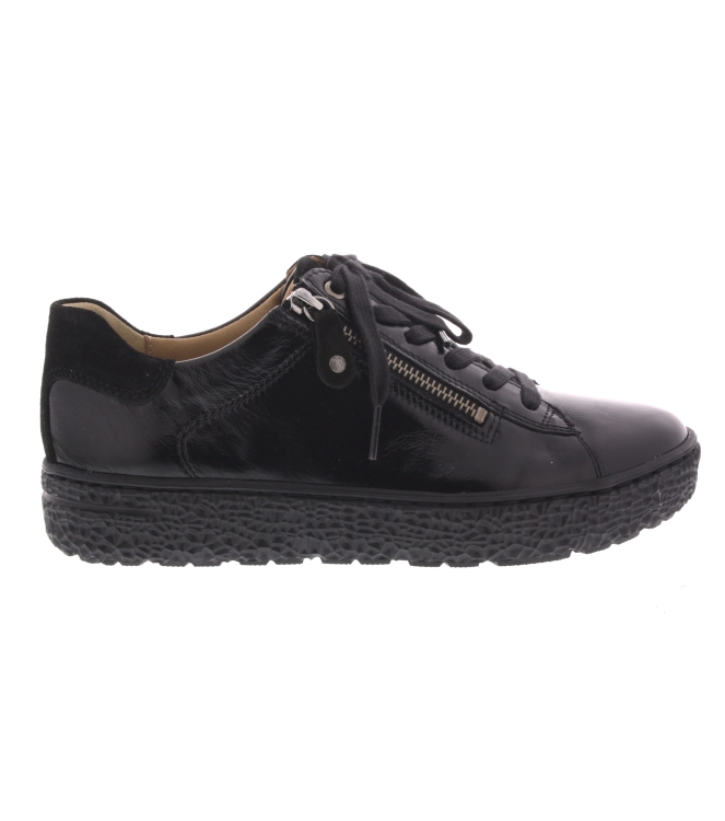Hartjes dames veterschoen artikel Phil Shoe 162.1401 in het zwart lakleer. De maakwijze is volledig leder en de schoen beschikt over een uitneembaar voetbed. Bijkomend voordeel is het extra lichte gewicht van de schoen wat in combinatie met de zool voor een subliem loopcomfort zorgt. De pasvorm valt breed door de H wijdte.