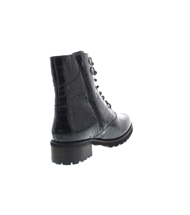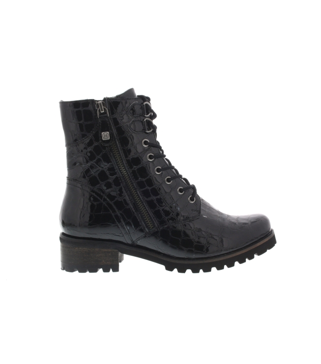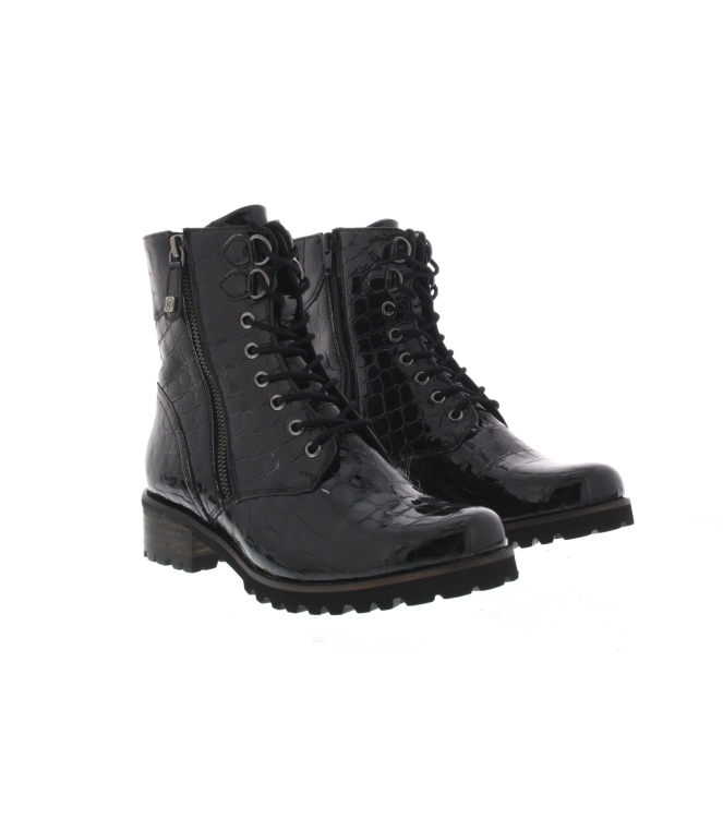 Heliofrom boots voor dames, artikel 658.024.0430 in het zwart lakleer. Beschikbaar met uitneembaar voetbed. Pluspunt is het lichte gewicht van de schoen. De pasvorm valt breder door de H wijdte.