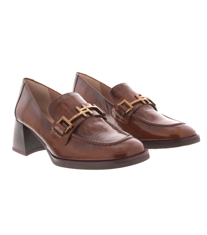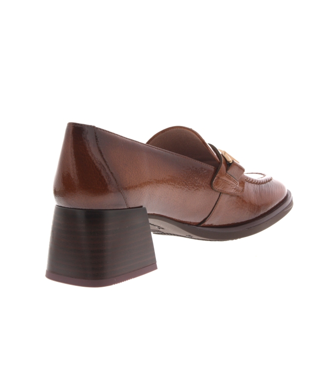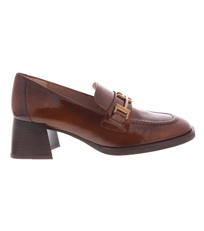 Hispanitas dames pump, artikel Milan HI243590 in het cognac lakleer. Voorzien van een prachtige sierlijke buckle. De hakhoogte bedraagt 4 cm. De pasvorm valt normaal.