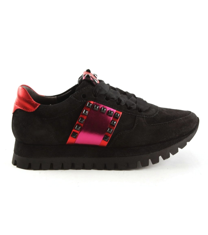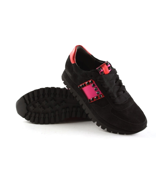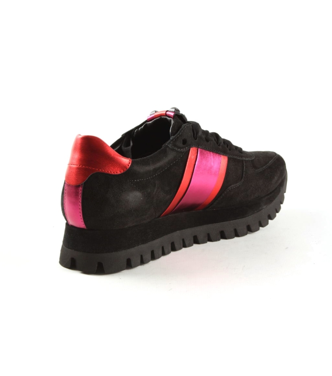 Dames sneaker van Kennel und Schmenger in het zwart leer, artikel 81-17470. Uniek is het kleurcontrast en de modische bewerking. Voorzien van een fantastisch loopcomfort. De pasvorm valt normaal