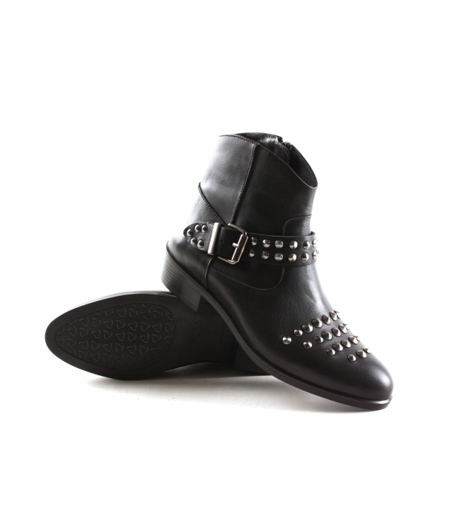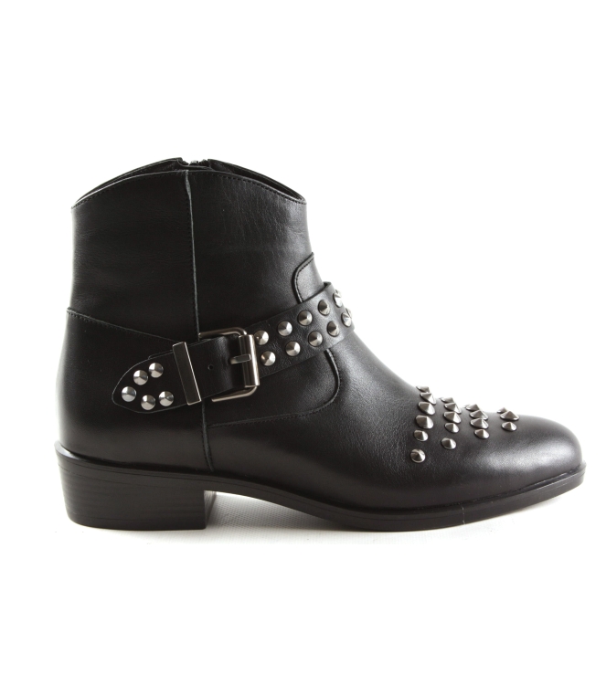 Kanna dames enkellaars artikel 18K18733 in het zwart leer. Kanna staat voor Spaans design in combinatie met een comfortabel voetbed. De pasvorm valt normaal. Fraai detail zijn de studjes. De hakhoogte bedraagt 2 cm