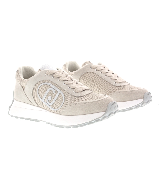 Liu Jo sneaker voor dames, artikel Lolo 17 in het zand nubuck leer in combinatie met mesh. Pluspunt is het lichte gewicht van de sneaker. De pasvorm valt normaal.