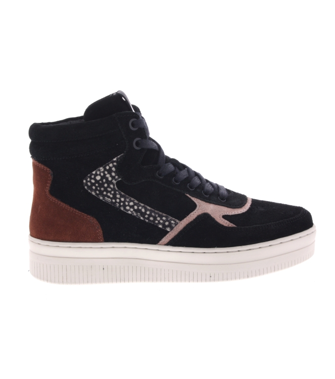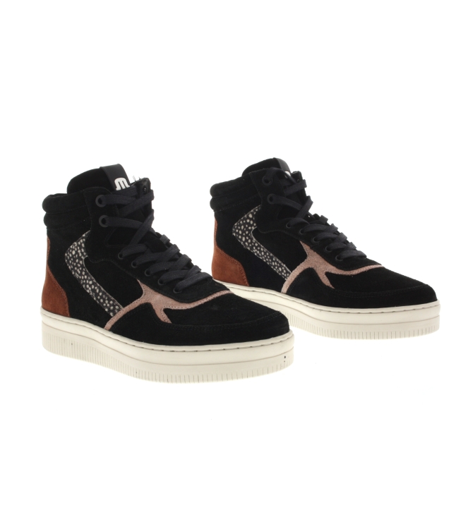 Maruti sneaker voor dames artikel Mona in het zwart combi suede leer. Fraai detail is de subtiele pixel bewerking. Maruti damesschoenen staan bekend om hun subtiele pixel bewerkingen. De sneaker is beschikbaar met een uitneembaar voetbed. De pasvorm valt normaal