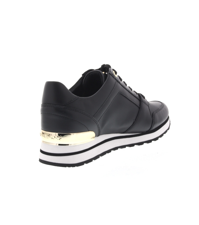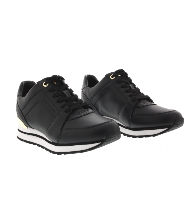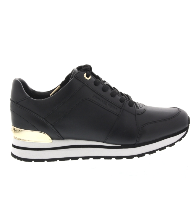 Michael Kors sneaker voor dames artikel Billie Trainer in het zwart leer. Zoekt u een luxe sneaker met een fijn comfort dan bent u bij Michael Kors aan het juiste adres. De pasvorm valt normaal. Hoe te dragen? U kunt deze sneaker van Michale Kors perfect combineren onder een jeans of onder een rok.