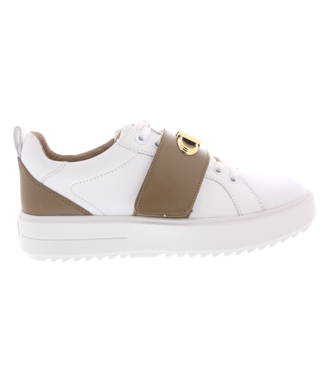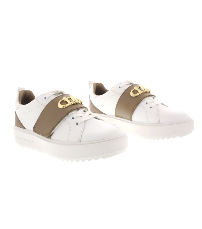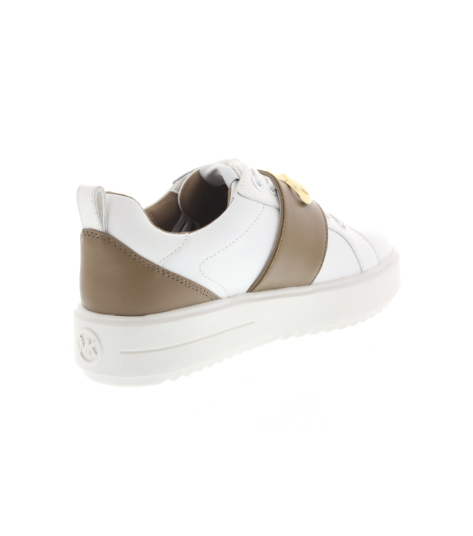 Michael Kors sneaker voor dames, artikel Huks in het wit leer. Fraai detail is het MK logo over de wreefband. De pasvorm valt normaal.
