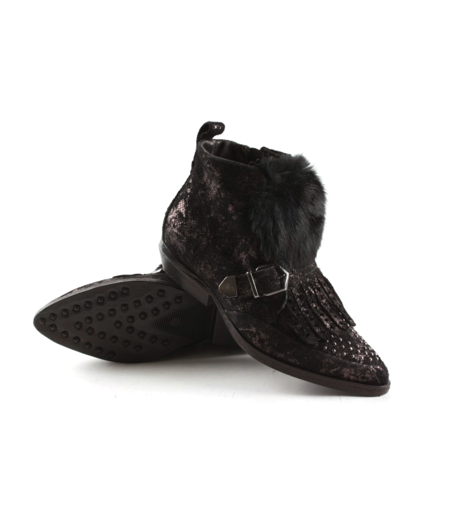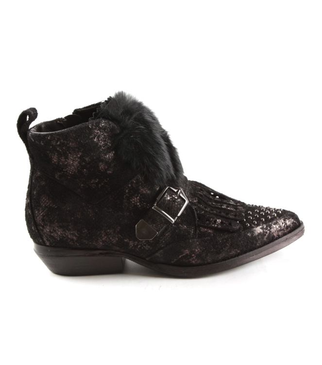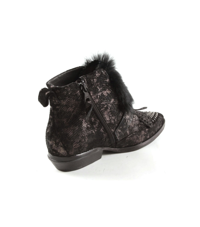Mjus dames enkellaars artikel 186210 in het zwart leer. De pasvorm valt normaal
