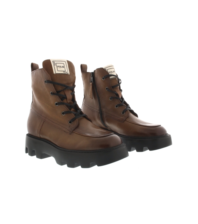 Mjus boots voor dames gemaakt in het cognac leer. Artikel p42202 laat zich kenmerken door de chunky licht gewicht zool. Mjus schoenen zijn volledig leder gemaakt. De pasvorm valt normaal.