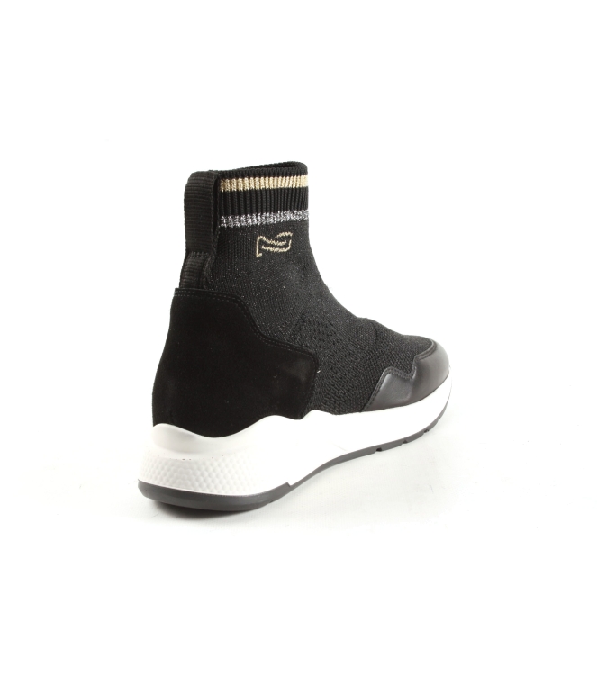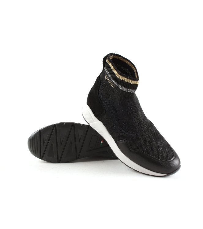 Nero Giardini dames sok sneaker artikel A909033D in het zwart textiel. Deze sneaker is afkomstig uit de nieuwe NG lijn. Beschikbaar met uitneembaar voetbed. LET OP DE PASVORM VALT EEN MAAT GROTER UIT.