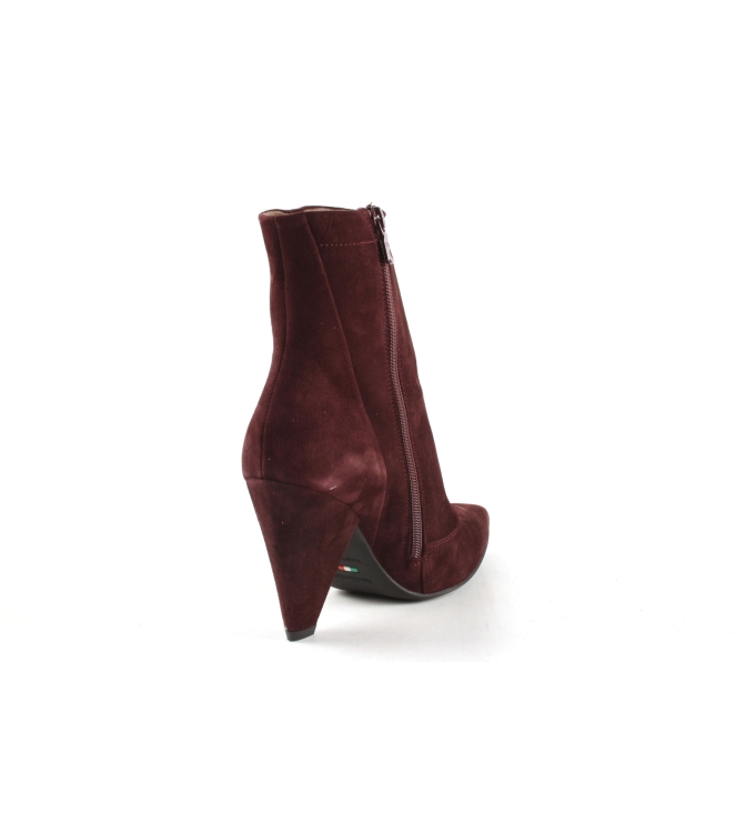 Nero Giardini dames enkellaars artikel A909453DE in het bordeaux suede leer. Het enkellaarsje sluit mooi aan de bij enkels en staat vrouwelijk aan de voet. De hakhoogte bedraagt 8,5 cm. De pasvorm valt normaal.