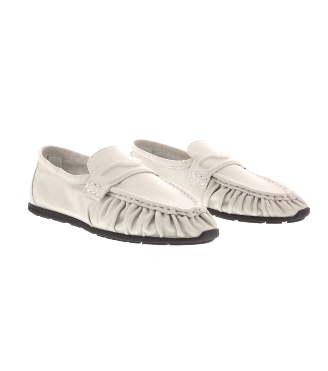 De Riley Mio in Off White brengt een frisse en moderne interpretatie van de klassieke loafer. Het soepele leer beweegt prettig met je voet mee en de plooien op de voorzijde voegen een luxe effect toe. De flexibele zool geeft een licht en comfortabel gevoel bij iedere stap. De abstracte strap op de wreef maakt het ontwerp herkenbaar en verfijnd. De loafer heeft een vaste binnenzool voor een stabiele pasvorm.