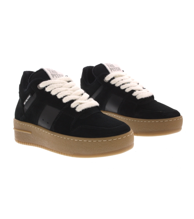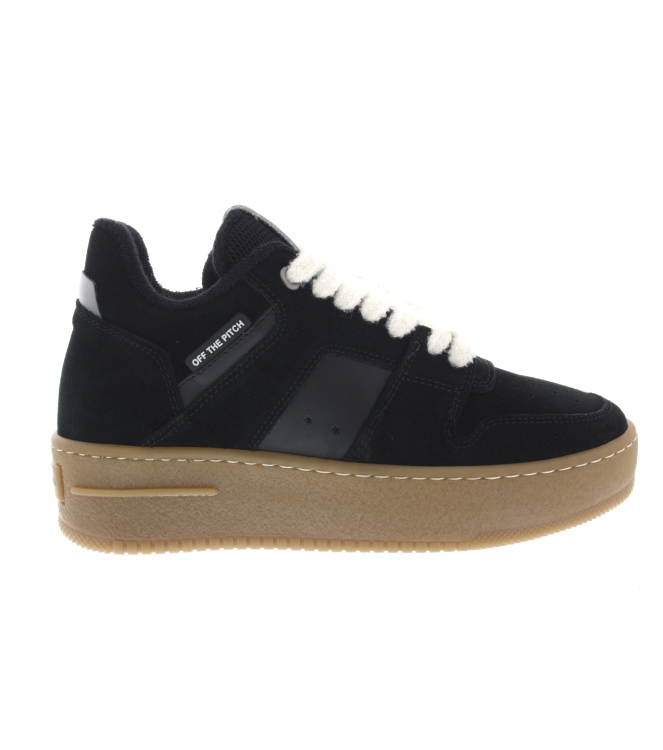 OFF THE Pitch sneaker voor dames, artikel Mocha in het zwart leer. De pasvorm valt normaal. De binnenzijde is van badstof gemaakt.