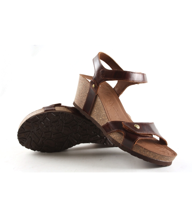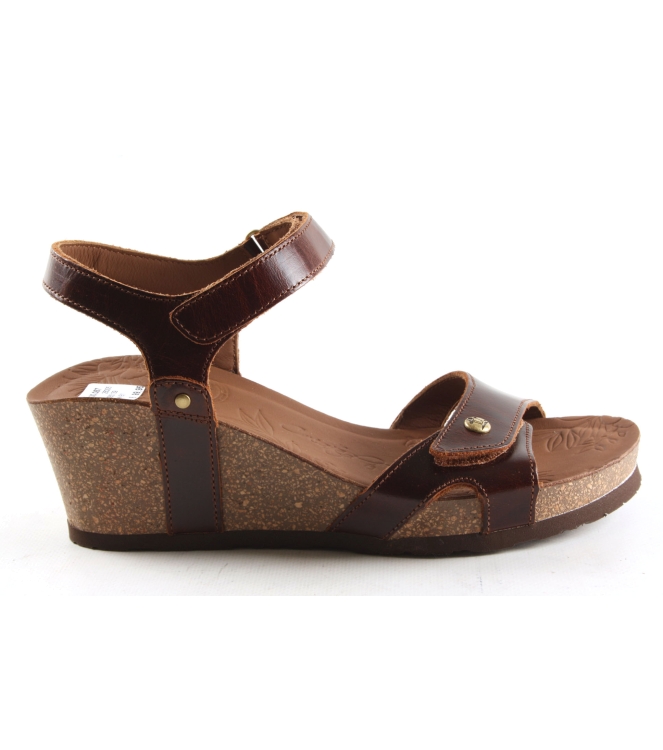 Panama Jack dames pump/samdaal artikel Julia Clay B1 in het bruin leer. De sandaal is voorzien van een subliem voetbed. De pasvorm valt normaal.