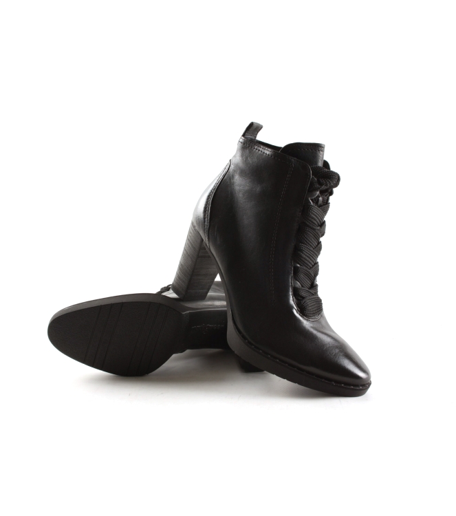 Paul Green dames enkellaars artikel 9435-003 in het zwart leer. De maakwijze is volledig leder. De hakhoogte bedraagt 6 cm. De pasvorm valt normaal tot iets slanker.
