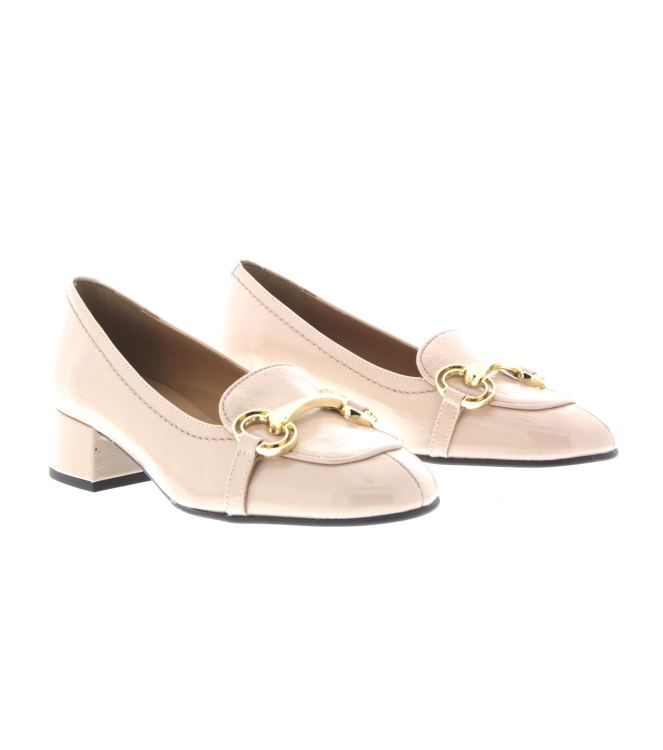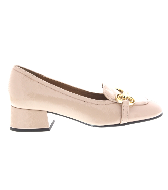 Tijdloze pump van het damesmerk Pedro Miralles. Artikel 28130 is gemaakt in het rose lakleer. De pump is voorzien van een fijne blokhak a 3 cm hoog. De pasvorm valt normaal.