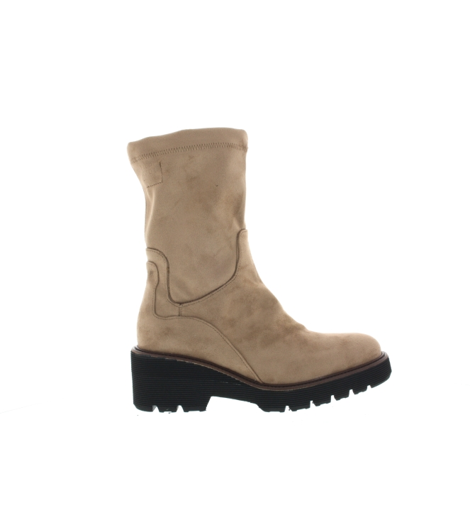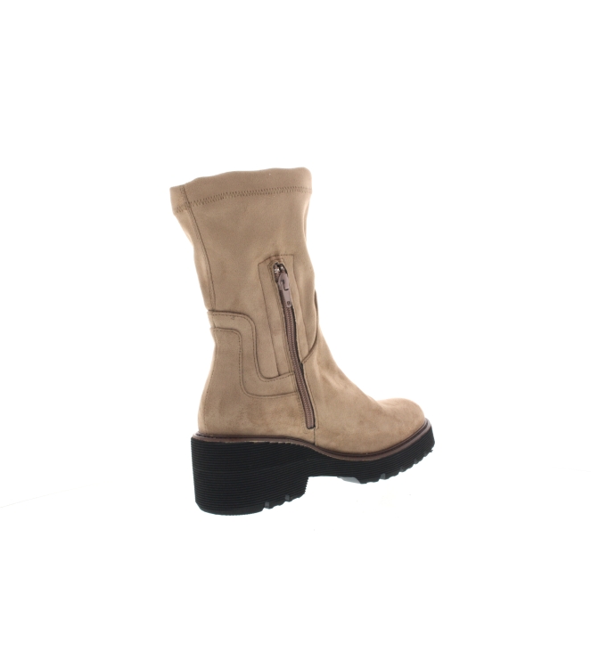 Piedi Nudi enkellaars voor dames, artikel Jolie 2556 in het beige nubuck leer. De enkellaars is bij de schacht voorzien van stretch materiaal waardoor deze perfect aansluit op uw kuit. De maakwijze is volledig leder gemaakt. Beschikbaar met uitneembaar voetbed. De pasvorm valt breed door de H wijdte