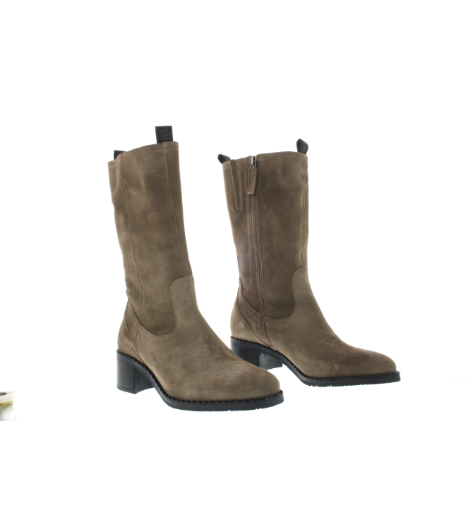 Piedi Nudi laars voor dames, artikel 2679 in het taupe nubuck leer. De binnenzijde is ook volledig leder gemaakt. Beschikbaar met uitneembaar voetbed. De pasvorm valt breed door de H wijdte