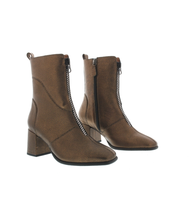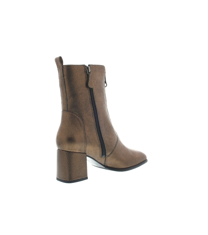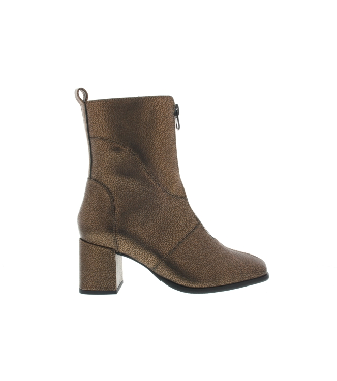 Piedi Nudi dames enkellaars, artikel Desire 1 in het goud/brons leer. Fraai detail is de sierrits in het midden van de laars wat deze vrouwelijke laars een stoere touch geeft. De maakwijze is volledig leder binnen en buitenzijde. De pasvorm valt iets breder door de G wijdte.