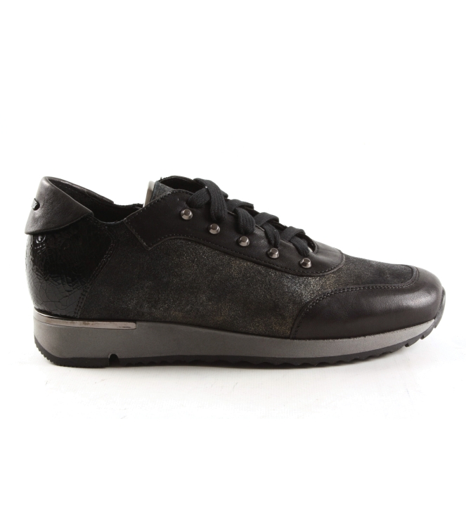 Red-Rag dames sneaker artikel 76544-929 in het zwart leer. De maakwijze is volledig leder en tevens beschikkend over een uitneembaar voetbed. De pasvorm valt normaal