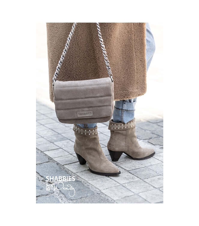 Shabbies by Wendy van Dijk is er ook dit najaar weer en hoe! Artikel Binas Wendy is gemaakt in het taupe suede leer. Fraai detail zijn de subtiele studjes wat de laars ook weer een wat stoerdere look geeft. De maakwijze is zowel binnen als buitenzijde volledig leder. De pasvorm valt normaal.