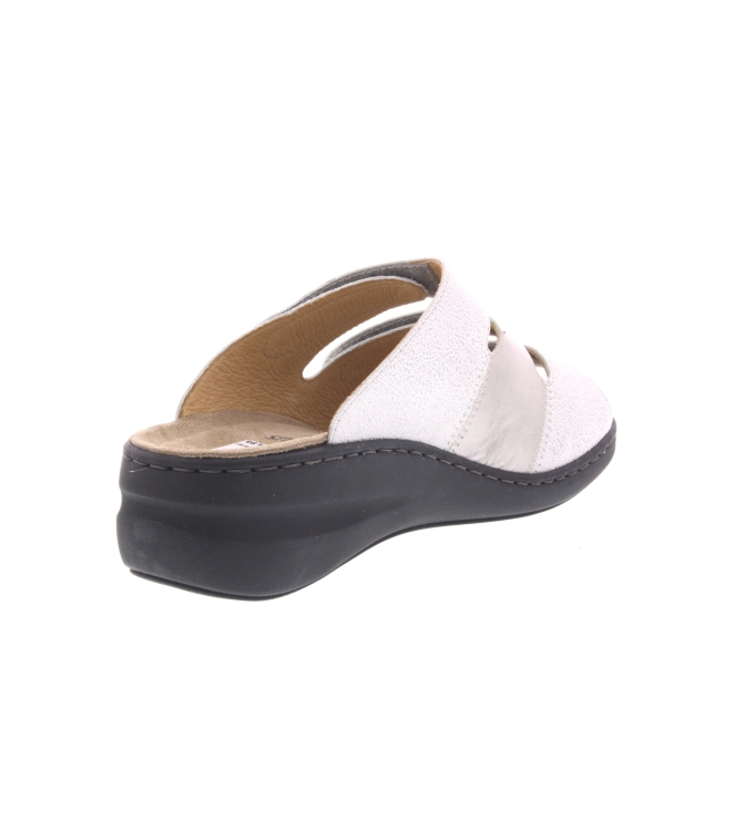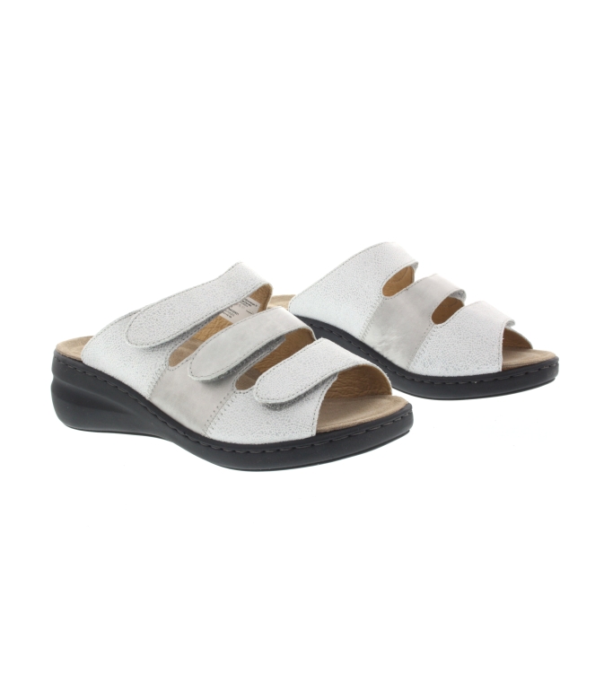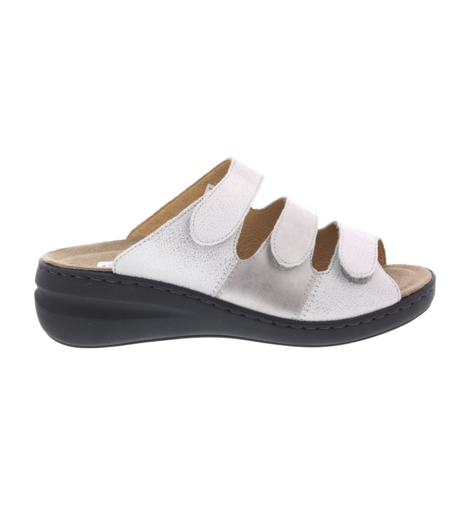 Solidus slipper voor dames, artikel Serenity 21154 in het off white zilver. Beschikbaar met uitneembaar voetbed. De pasvorm valt breed door de H wijdte.